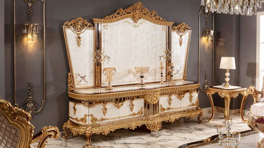 L’ensemble de Hunkar Unité De Télévision Classique Dorée a été spécialement conçu pour la collection Evgor Furniture par des artisans qualifiés utilisant des matériaux de première qualité dans les moindres détails. Dès le moment de la commande, tous les processus de production sont méticuleusement suivis. Chaque meuble qui sort de la production est soigneusement emballé et expédié dans le monde entier par des entreprises sous contrat avec assurance.