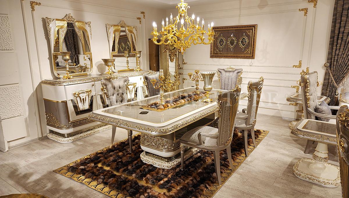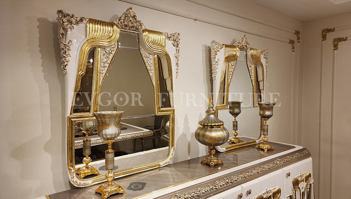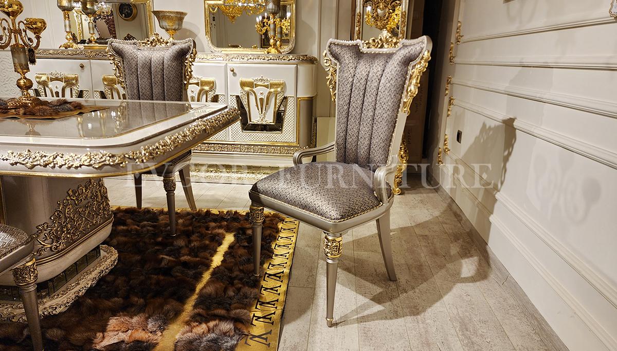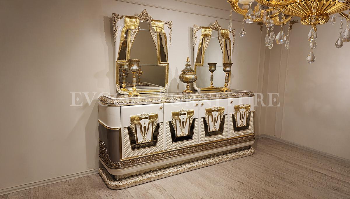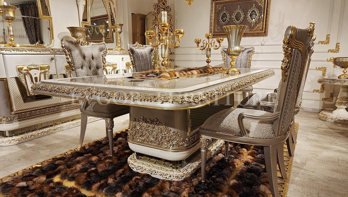 The Brilliant Cream Classic Dining Room specially designed furniture that in the Evgor Furniture collection is produced by skilled craftsmen using first class materials in every detail. From the moment of order, all process of production are meticulously followed. Every piece of furniture that comes out of production is carefully being packaged and shipped to the whole world by contracted companies under insurance.