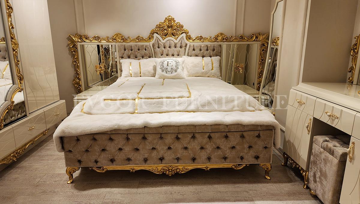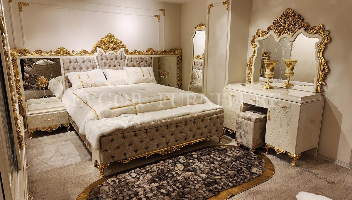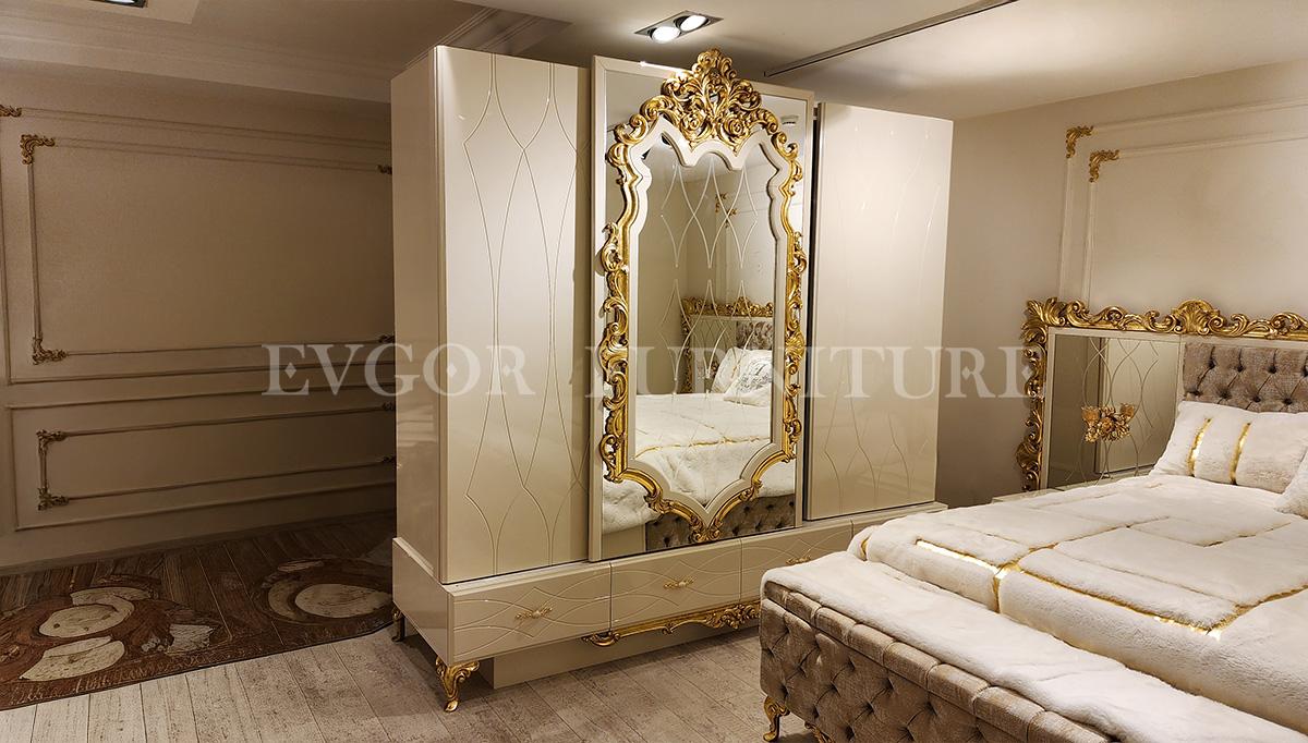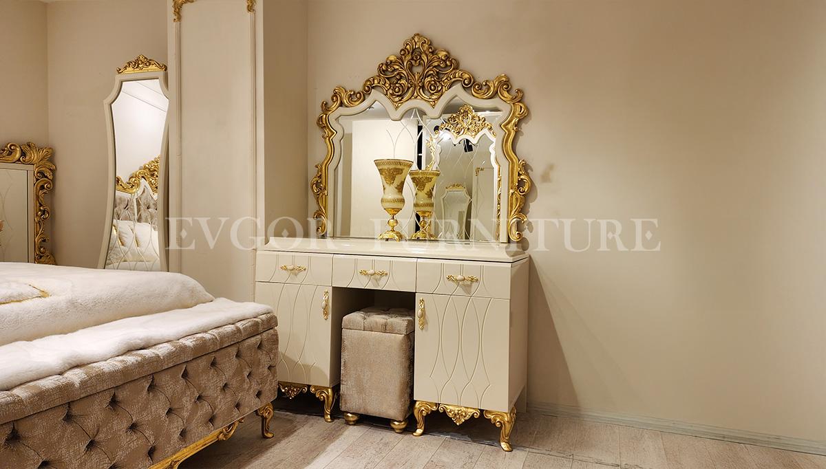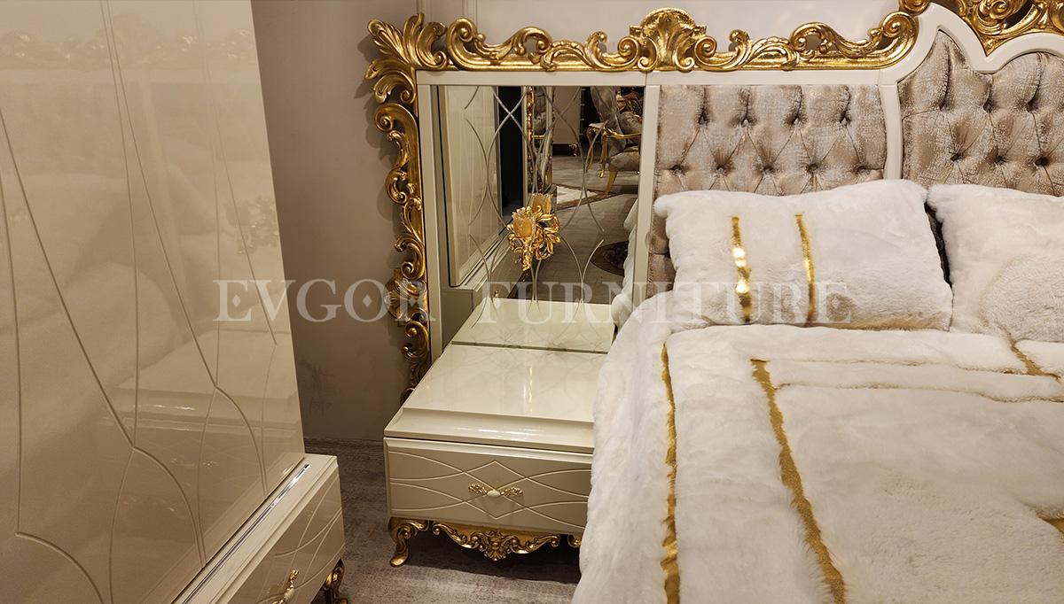 The İnci Cream Classic Bedroom specially designed furniture that in the Evgor Furniture collection is produced by skilled craftsmen using first class materials in every detail. From the moment of order, all process of production are meticulously followed. Every piece of furniture that comes out of production is carefully being packaged and shipped to the whole world by contracted companies under insurance.