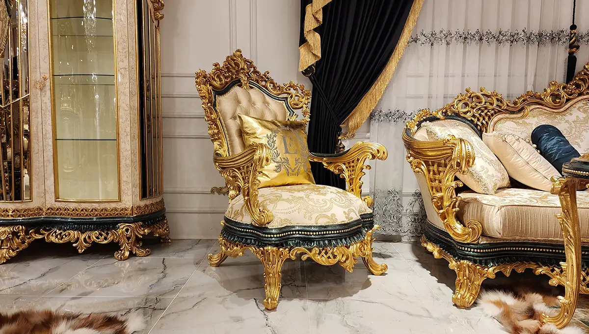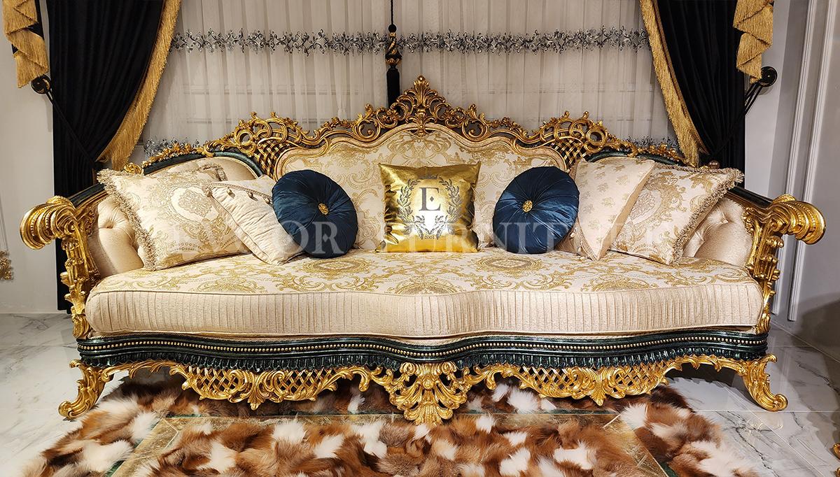 The Nazende Green Classic Sofa Set specially designed furniture that in the Evgor Furniture collection is produced by skilled craftsmen using first class materials in every detail. From the moment of order, all process of production are meticulously followed. Every piece of furniture that comes out of production is carefully being packaged and shipped to the whole world by contracted companies under insurance.