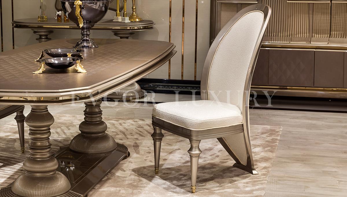 The Resivo Luxury Dining Room specially designed furniture that in the Evgor Furniture collection is produced by skilled craftsmen using first class materials in every detail. From the moment of order, all process of production are meticulously followed. Every piece of furniture that comes out of production is carefully being packaged and shipped to the whole world by contracted companies under insurance.