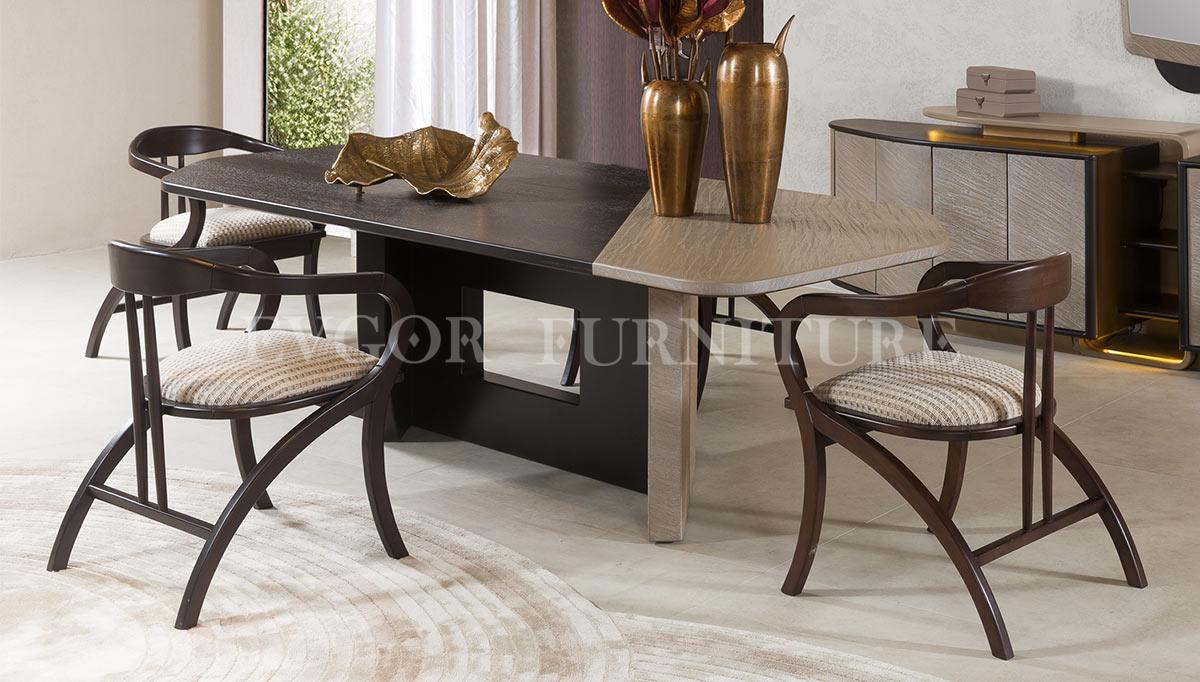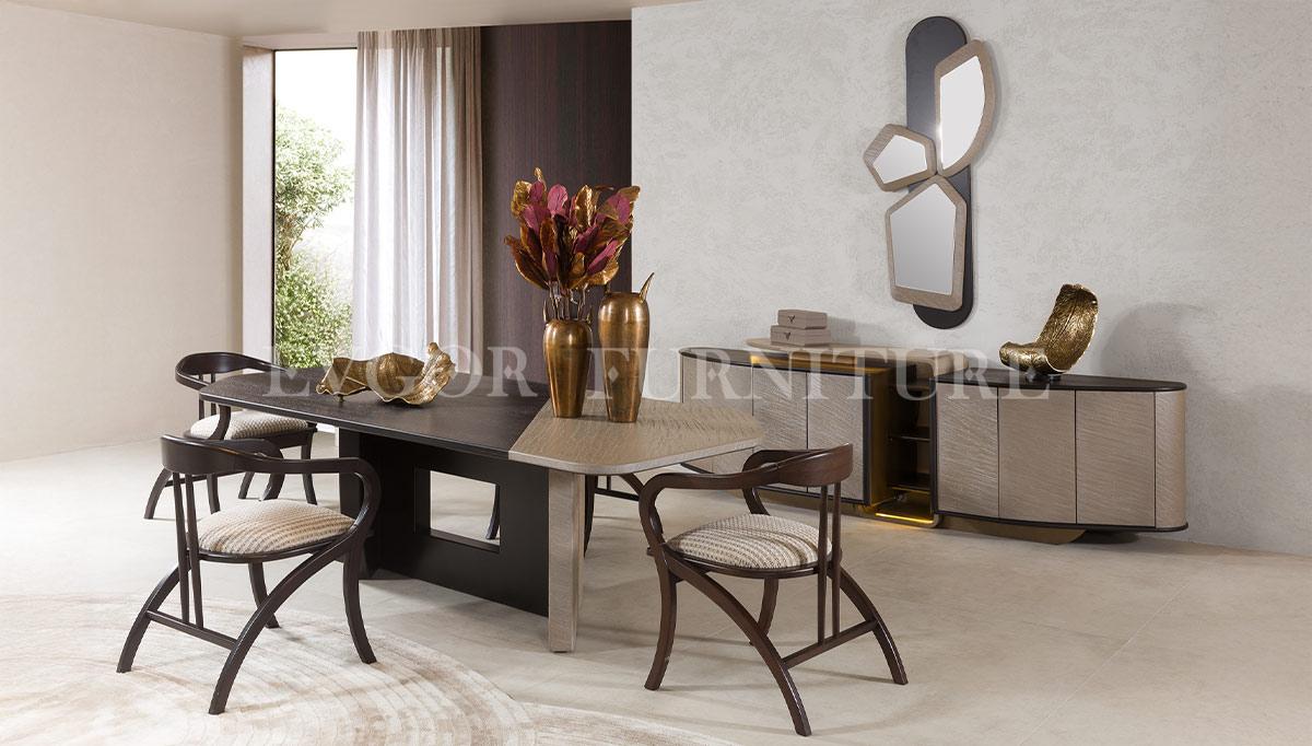 The Rossi Luxury Dining Room specially designed furniture that in the Evgor Furniture collection is produced by skilled craftsmen using first class materials in every detail. From the moment of order, all process of production are meticulously followed. Every piece of furniture that comes out of production is carefully being packaged and shipped to the whole world by contracted companies under insurance.