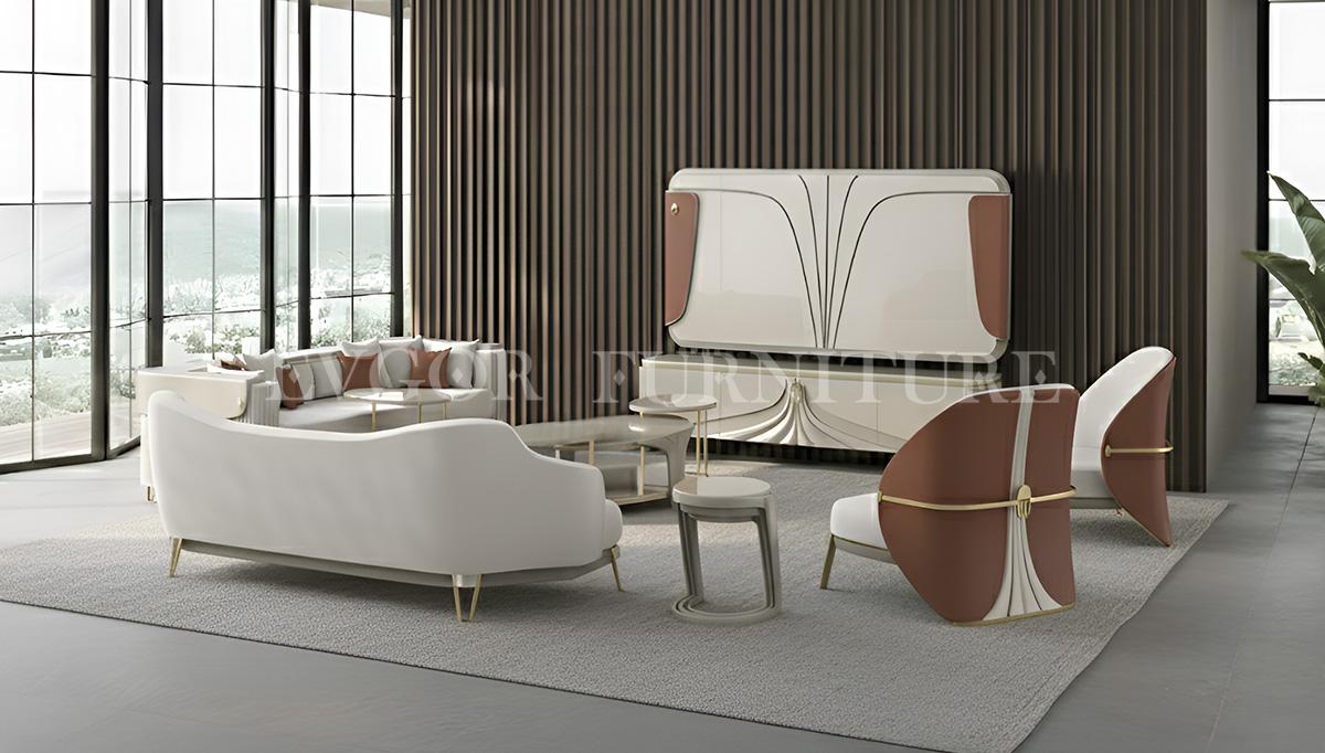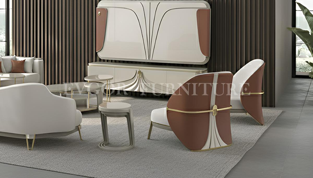 The Sidney Luxury Sofa Set specially designed furniture that in the Evgor Furniture collection is produced by skilled craftsmen using first class materials in every detail. From the moment of order, all process of production are meticulously followed. Every piece of furniture that comes out of production is carefully being packaged and shipped to the whole world by contracted companies under insurance.